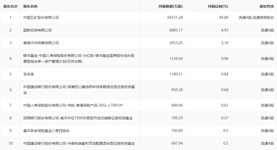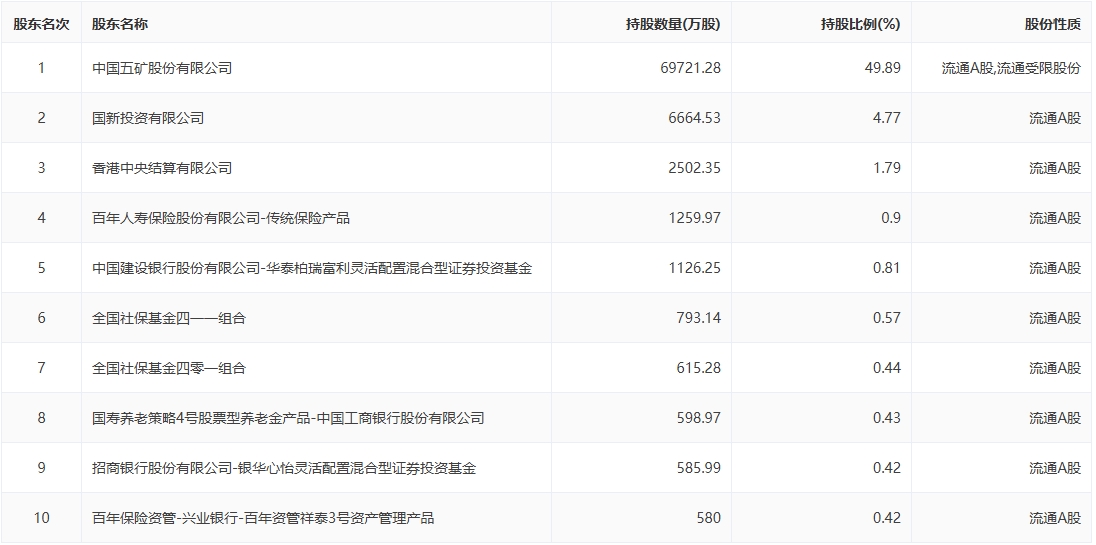 十大股东